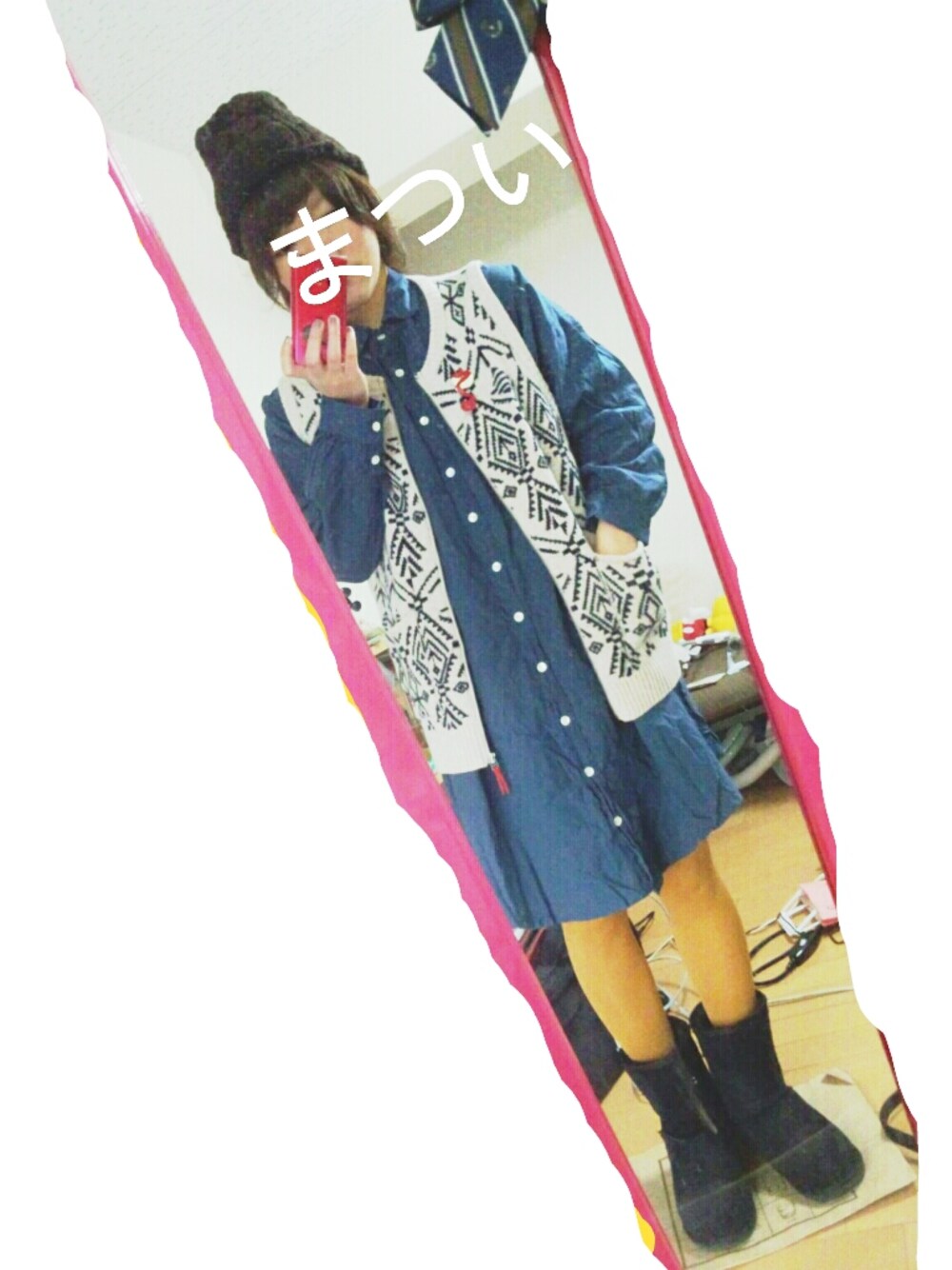 ニットベスト、シャツワンピ mumokuteki 久々にプリクラを撮ったら 足がばーり長く、まっすぐになって 驚きました。技術すごい。