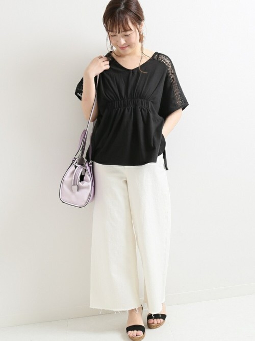 TORRAZZO DONNA 肩レースプルオーバー 肩に入るラインレースが涼しげなデザインカットソー。 胸下の切り替えが華奢なシルエットになり、ワイドパンツにもバランスの良いアイテムです!