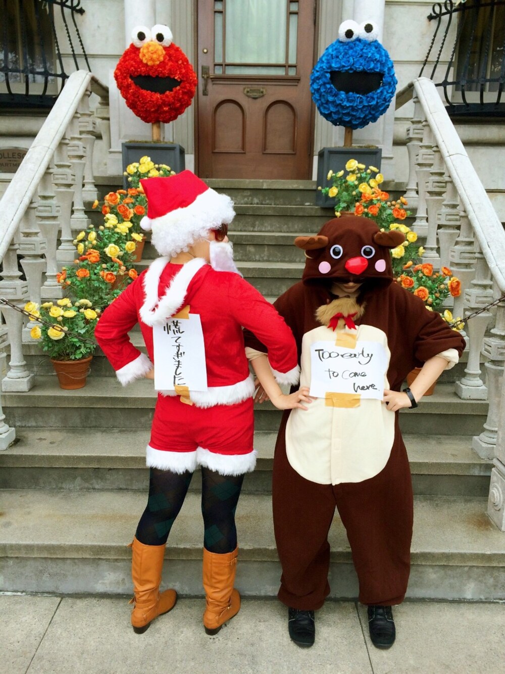 メリークリス、、!?あれ!?早い! 間違ってない!?いいえ間違ってないよ 慌てん坊のサンタクロースでハロウィンです。 慌てすぎましたサンタと Too early to comeトナカイ 私トナカイ\(^o^)/ ハッピーハロウィン!