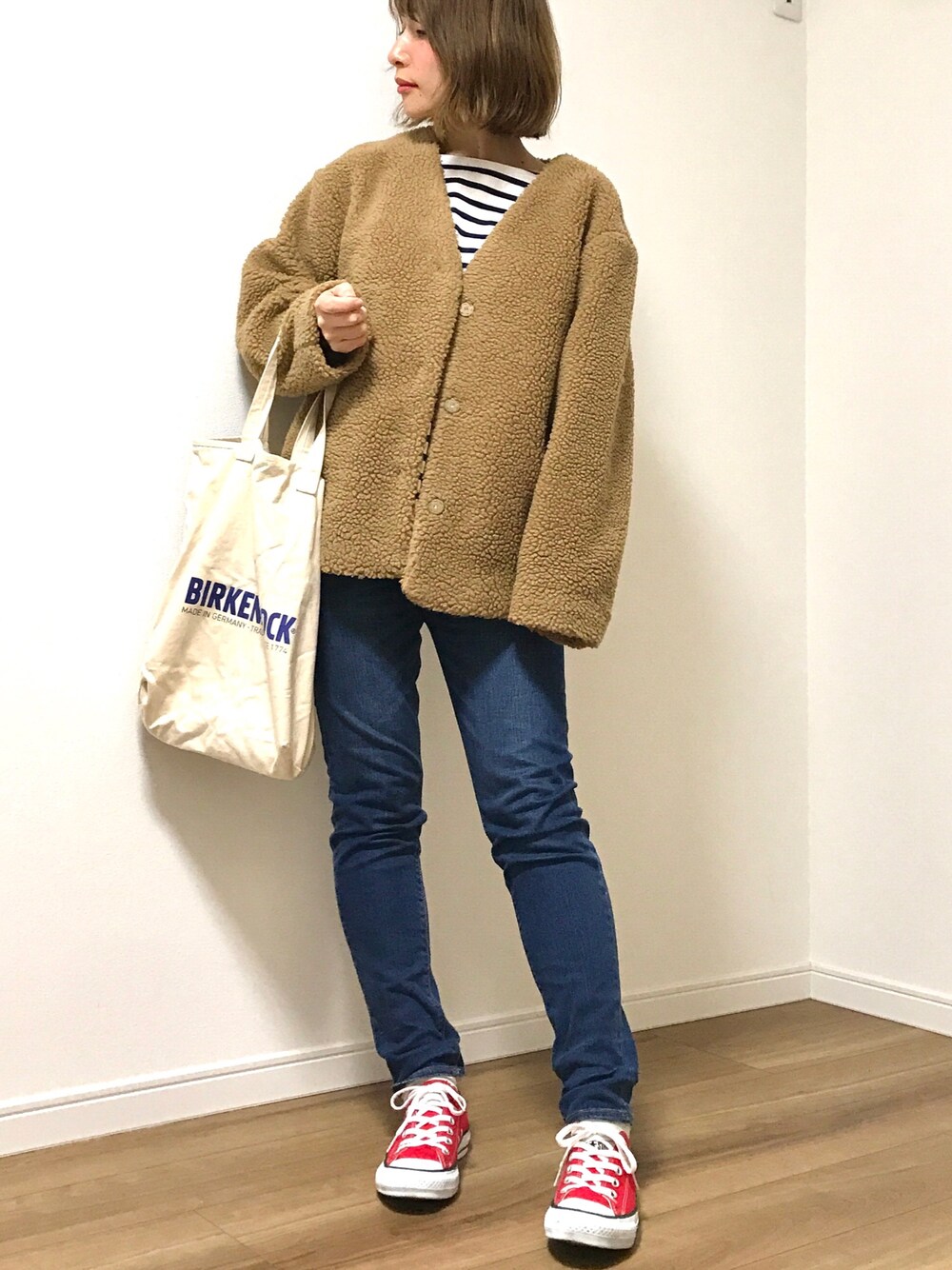 ❁ a i ❁のブルゾン「ノーカラーショートボアブルゾン」を使ったコーディネート