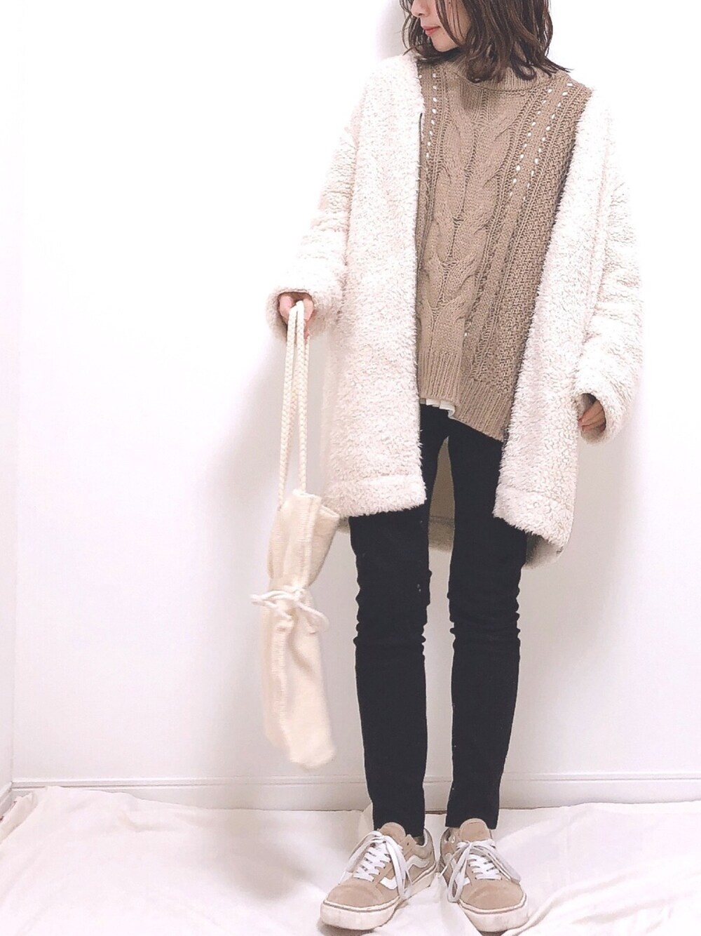 ベージュニット×黒スキニー です^_^ 黒スキニーは何に合わせてもOKだから助かる❣️ 早くzozoスキニーでブラックが出て欲しい🙏✨✨ いつも見て下さりありがとうございます☺️