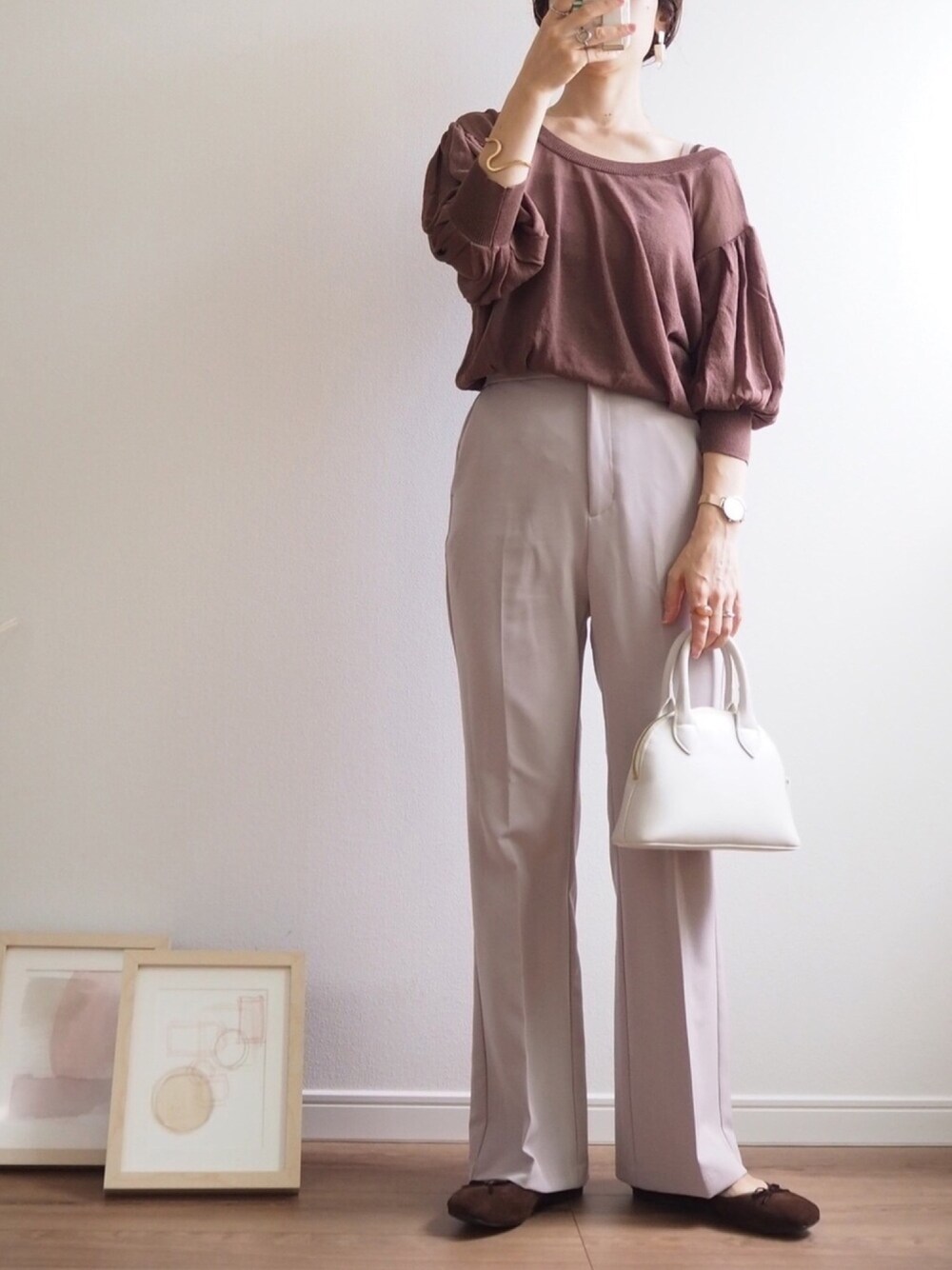 EVOL さんのスクエアトゥバレエシューズ🩰 スウェード地が秋っぽくて、カタチは本当のトゥシューズみたいですごく可愛いです🍂 スクエアデザインが甘くなりすぎないので、いろんなコーデに合いそうです🤎 トップスは Who's who Chicoさんのシアーニット🧶SALEで1000円くらいでお得にゲットしました✨ パンツとバッグはGUです🤎 いつも見ていただけて嬉しいです🧸🍦