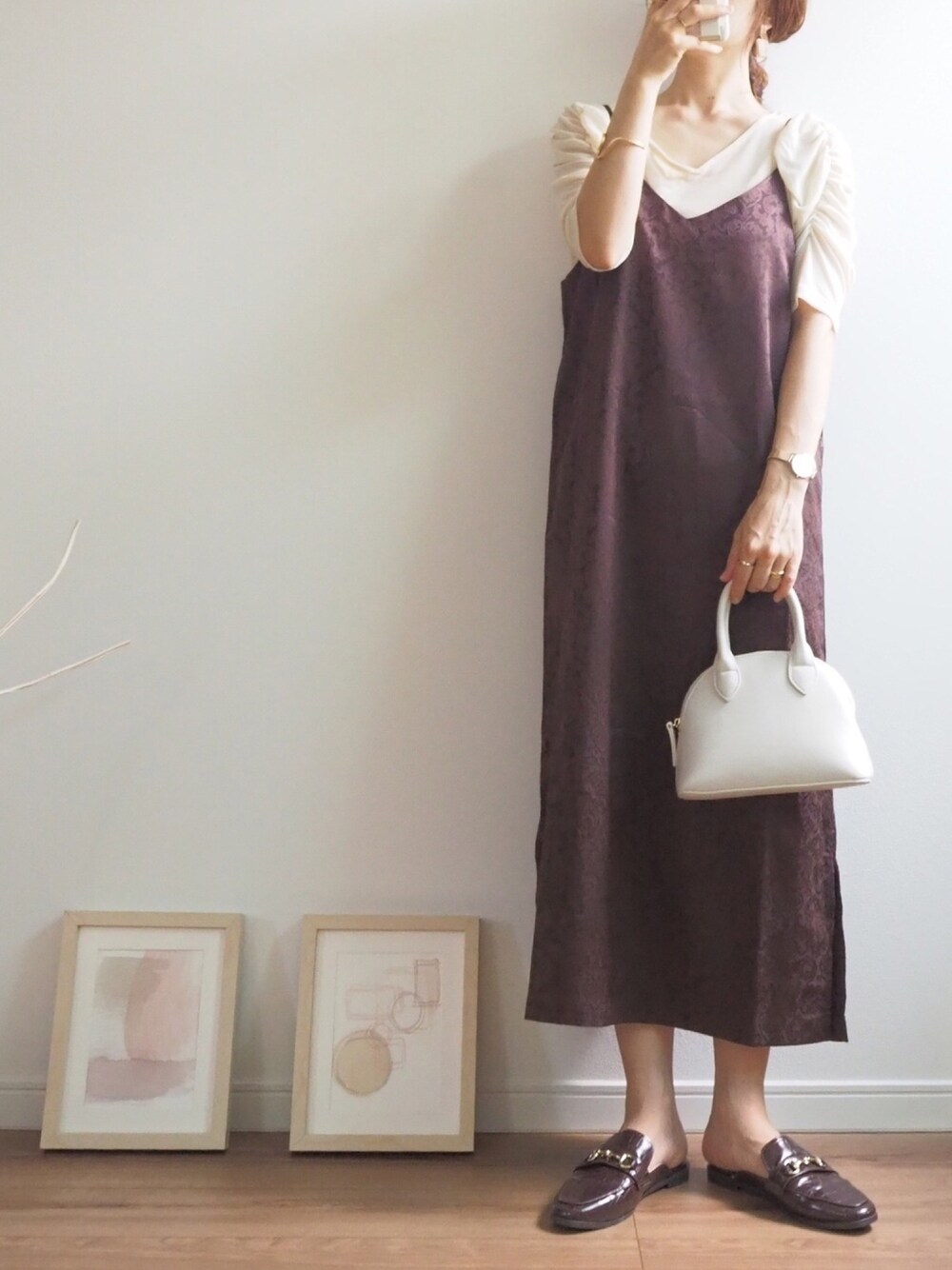 ❁ a i ❁のワンピース「【UNFIELD ジャガードサテンキャミワンピース】」を使ったコーディネート