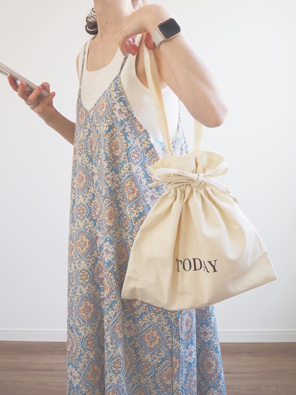 ❁ a i ❁のトートバッグ「【KR×u.e.made*×CORNERS】TODAY ロゴ巾着トートバッグ」を使ったコーディネート
