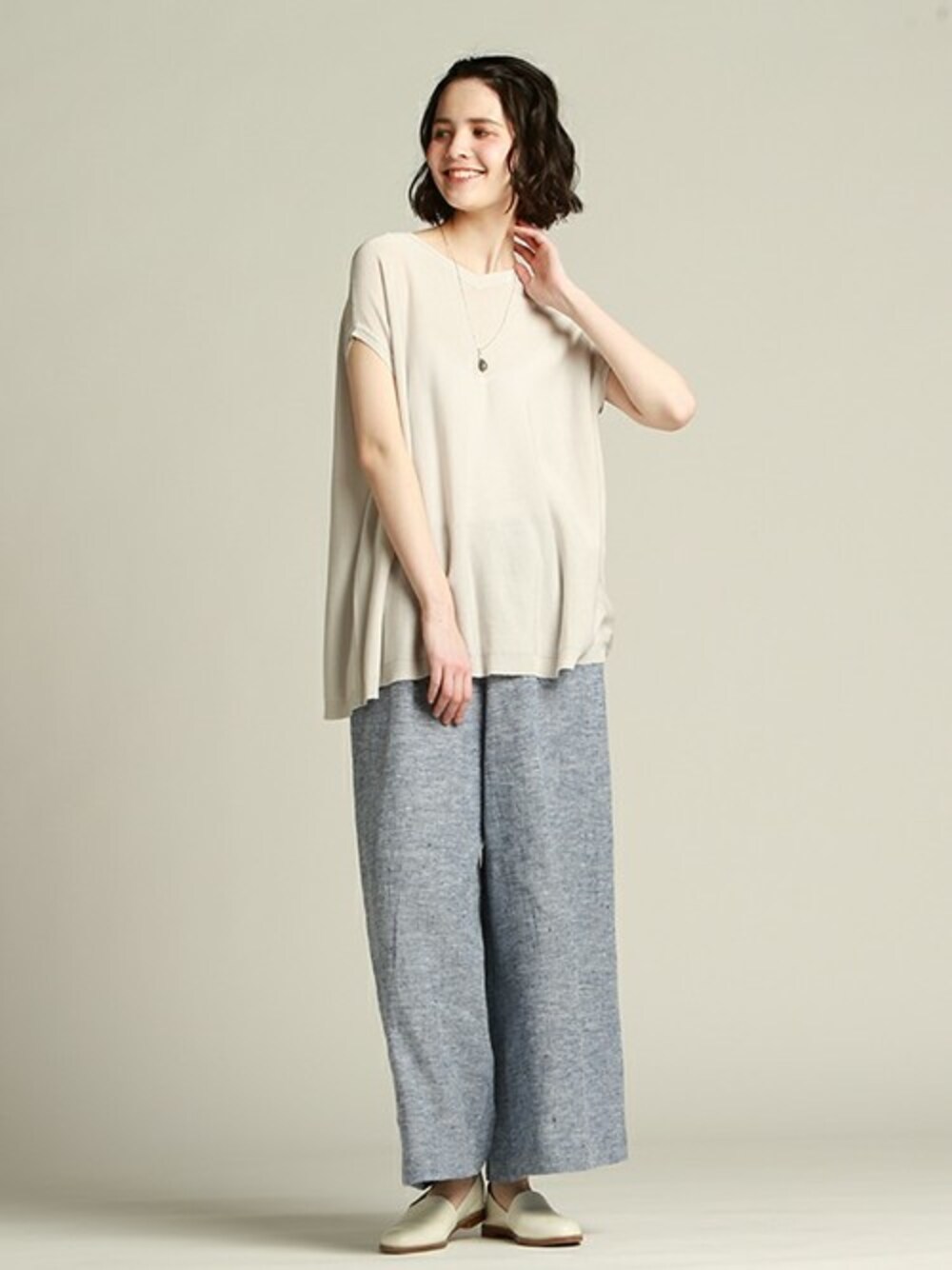 LAUTREAMONT CO. ONLINE SHOP ZOZOTOWNのニット/セーター「【WEBサイズ別注】前後着用可 綿レーヨン強撚天竺アシンメトリーニットトップス」を使ったコーディネート