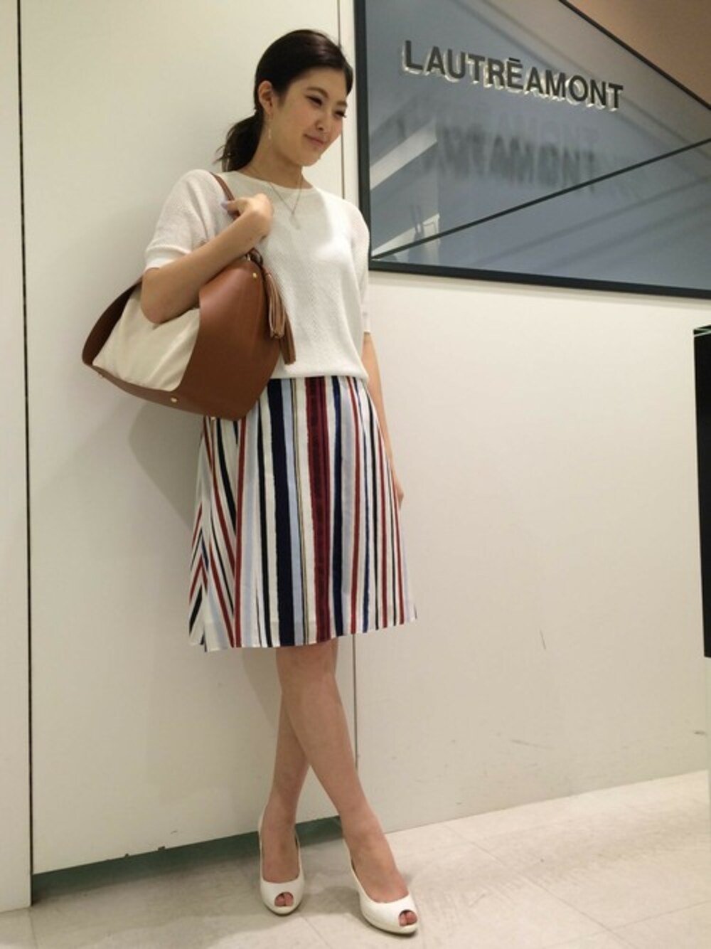 手書き風ストライプスカートにスッキリとした5分袖ニットを合わせたコーディネート。スカートは足が長く細く見え可愛らしすぎなくキレイめに履いていただけるシルエットです!スタッフ身長164cm 着用サイズ ニット9号 スカート9号