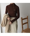 Lavish Gate Staffのニット/セーター「knit-02075 ボタンデザイン リブ ハイネック ニット ブラック ブラウン ダスティブルー アイボリー」を使ったコーディネート