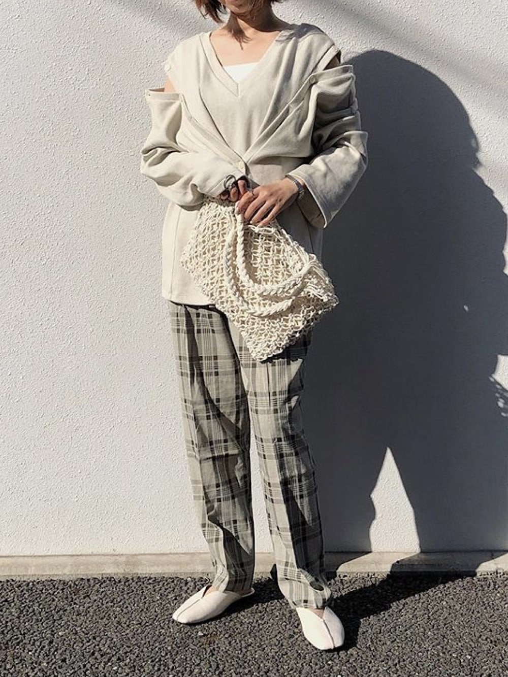 【 ITEMS 】 日本製Vネックボタンデザインコットンリブプルオーバー col;grege tops-04031 スクエアネックニットタンクトップ col;white tops-02060 チェックセミワイドタックテーパードパンツ ピスタチオ siz;M L(着用サイズM) bottoms-02060 ネットバッグ bag2-02350 センターシームスクエアトゥVカットサンダル col;écru shoes-02067 ー ー ー ー ー ー ー ー ー ー ー ー ー ー ー ー ー ー STAFF HEIGHT 164cm ☑︎Instagram lavishgate_staff