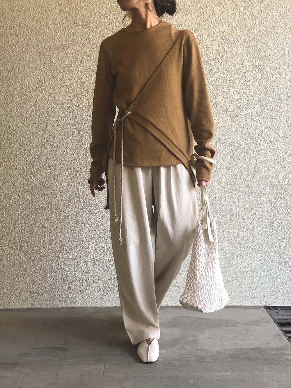 【 ITEMS 】 日本製ロープデザインアシンメトリー リブプルオーバーセット col;camel tops-04033 リネン混ワイドテーパードパンツ siz;M L(着用サイズM) bottoms-02007 スクエアネットトートバッグ インナーポーチ付き col;off white bag2-02459 センターシームスクエアトゥVカットサンダル col;écru shoes-02067 ー ー ー ー ー ー ー ー ー ー ー ー ー ー ー ー ー ー STAFF HEIGHT 160cm ☑︎Instagram lavishgate_staff