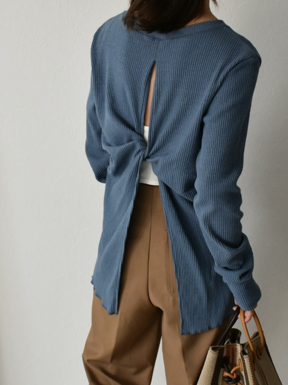 Lavish GateのTシャツ/カットソー「tops-04027 日本製 オールドコットリブ バックツイスト プルオーバー ダスティブルー グリーンベージュ」を使ったコーディネート