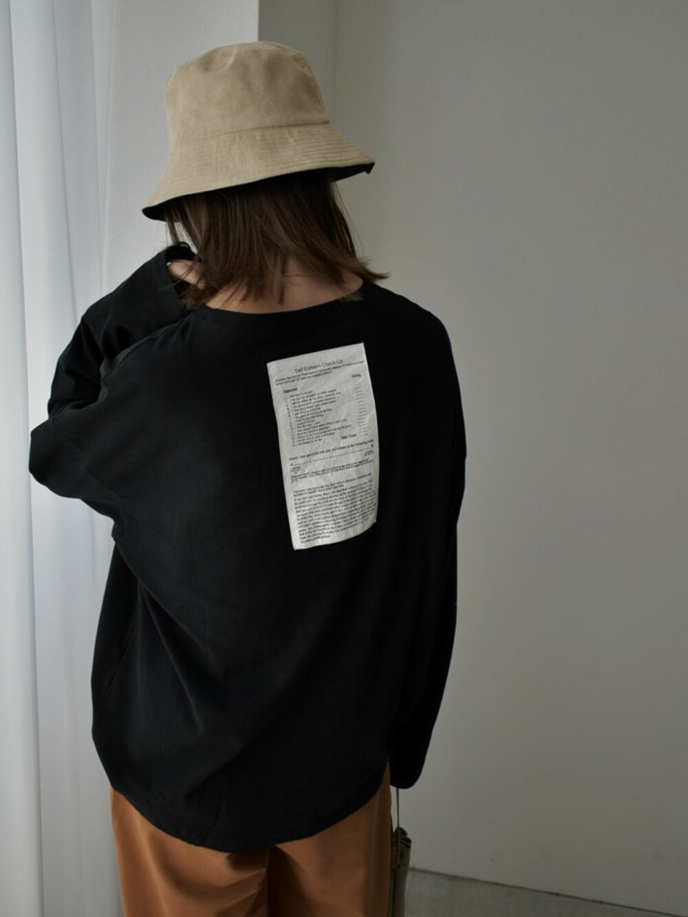 Lavish GateのTシャツ/カットソー「nh-tops-02183 worksheet ロングTシャツ ホワイト ブラック」を使ったコーディネート
