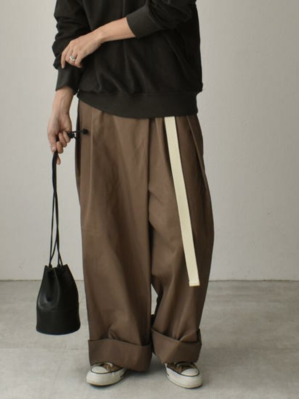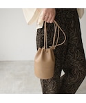 Lavish Gateのショルダーバッグ「bag2-02508 エコレザー ミニ巾着バッグ ブラック エクリュ モカベージュ」を使ったコーディネート
