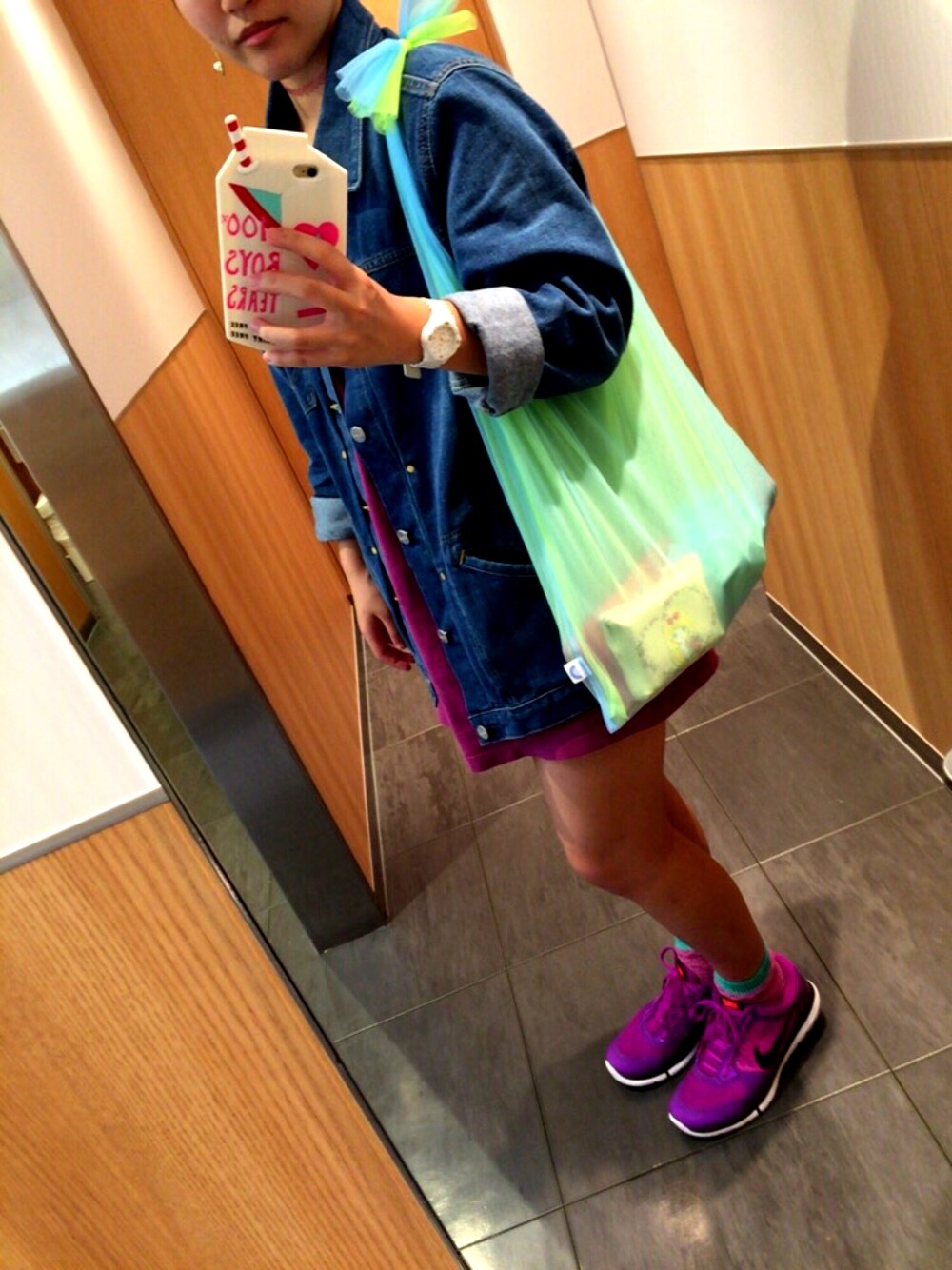 m⃝i⃝y⃝u⃝のデニムジャケット「Wrangler/ラングラー コラボ BIG FIT Gジャン」を使ったコーディネート