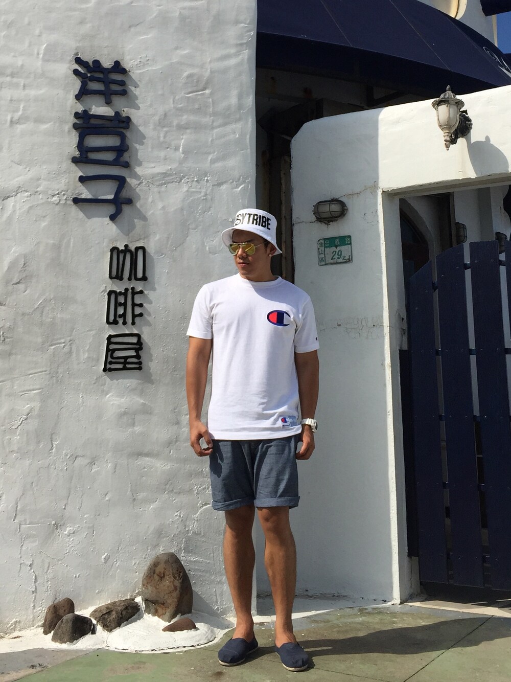 炎熱的夏天穿短褲出門是最舒服的,再搭配上Champion 本季最新的復古大logo t-shirt,營造出夏天陽光清爽的氣息