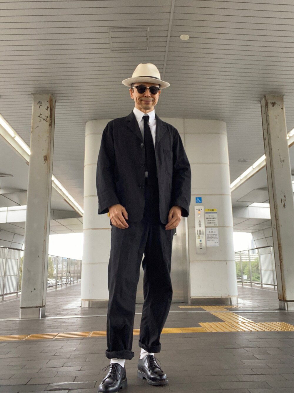 出勤コーデ。 カバーオールとテーラード・ジャケットの中間みたいな上着です。裏地なしのサラッとした肌触りで、今ぐらいの季節に心地良いです。かなりカジュアルですが、黒いので、白シャツに黒タイを合わせるとけっこうちゃんとして見える気が。