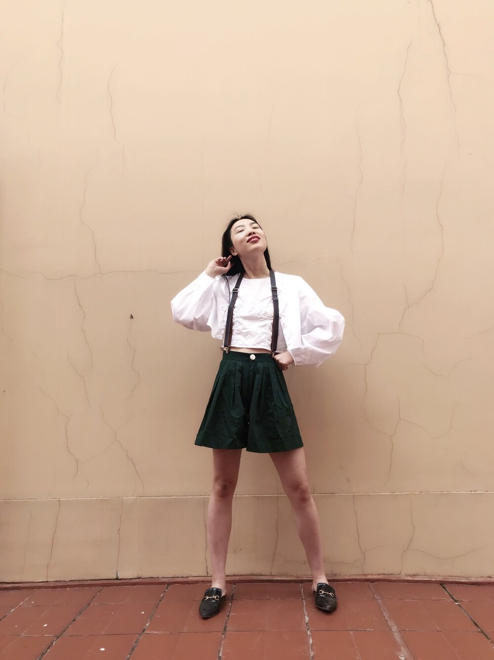 #今天穿什么 #穿搭tips 两件同色衬衫叠穿 在追求简单的同时增加了层次感 一条背带 可以给搭配带来更多的趣味