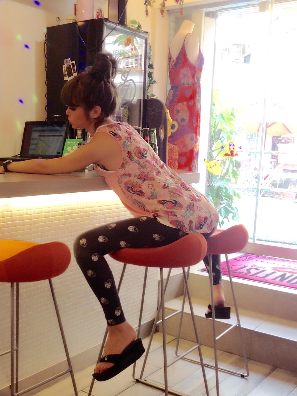 ヘアメンテ完了♡ 危うく金髪に戻りそうだったので、ブルーグレーを追加( ˙👄˙👐) 毛先はネイビーにしてみた( ˙👄˙👐) けども(・д・)/ 今更ながら...前髪切ったことを心から後悔しているひめさまです← 暑いのよマジで(ʘ言ʘ╬) おでこって汗こんなにかくのかよ(ʘ言ʘ╬) 代官山着く頃には化粧落ちてるのよ(ʘ言ʘ╬) はぁーしんどい_( :⁍ 」 )_ ということで、今日もストレッチしながらアップしております♪( 'ω' و(و " この気持ち悪いタンク、気持ち悪いけど可愛いんだよー( *˘ ³˘)♥ 目からミミズ出てるけど可愛いんだよー( *˘ ³˘)♥ 脳みそジュースになってるけど可愛いんだよー( *˘ ³˘)♥ やっすい靴履いたら靴ズレして、パンプスが履けないよー╭(°A°`)╮