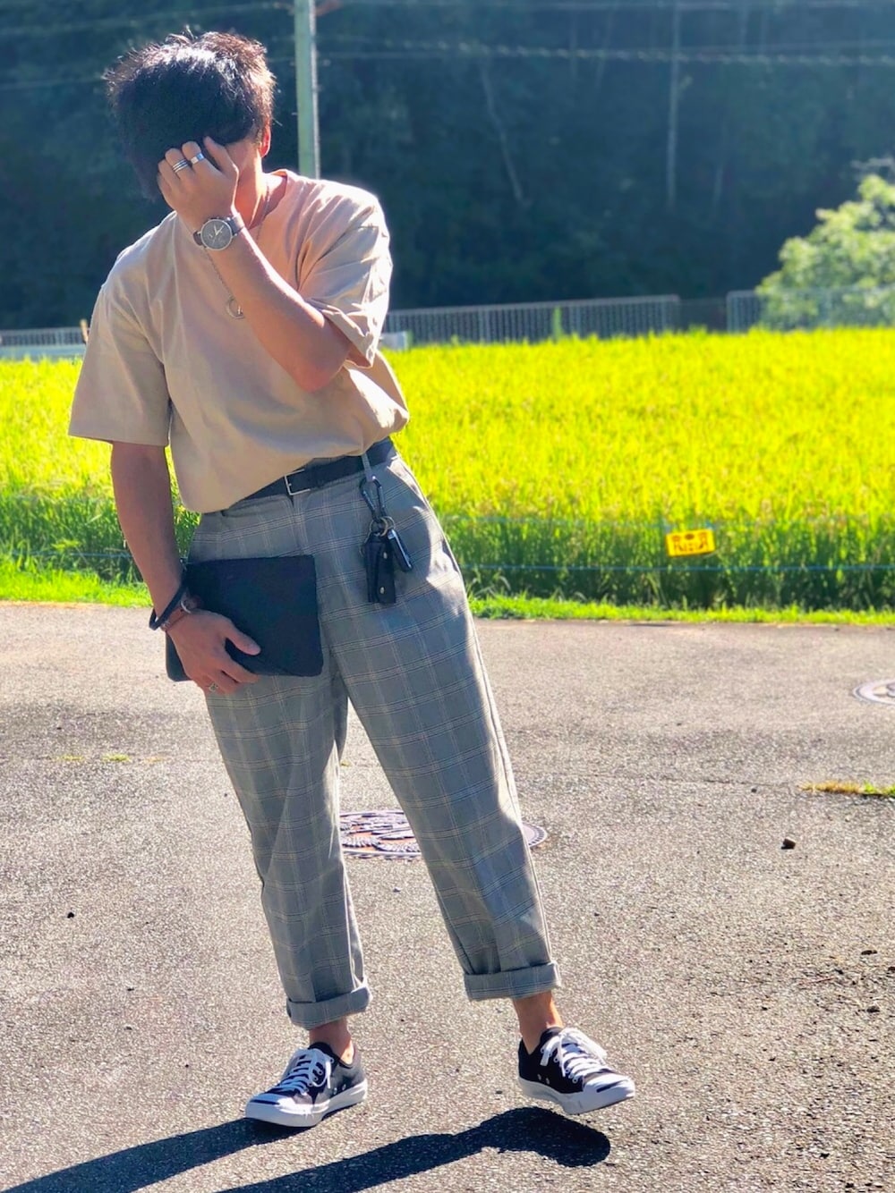 閲覧ありがとうございます😸 エマクローズのTシャツ 若干のオーバーサイズで着心地も🙆 GUのパンツはレディースで セールで買ったのでとても安かった💰 股の締め付けも少なくて 男の人でも全然履けちゃう、お得🤞