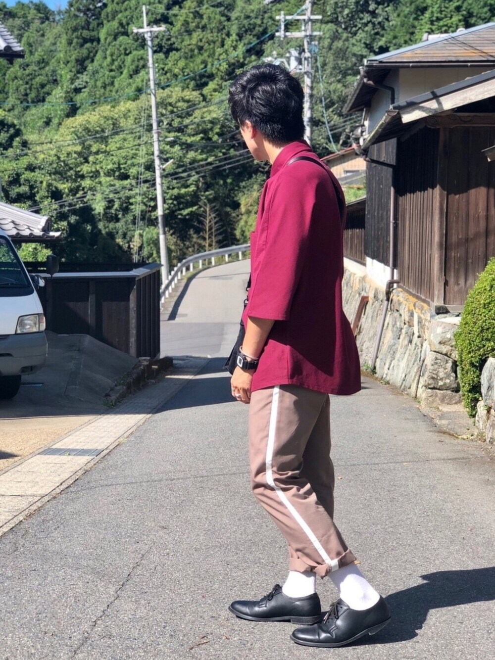 閲覧ありがとうございます😸 sence of placeで固めて見ました! 両方無地だとシンプルで キレイめ過ぎると思ったので、 トラックパンツで少しカジュアルを 取り入れてみたぜっ🤞