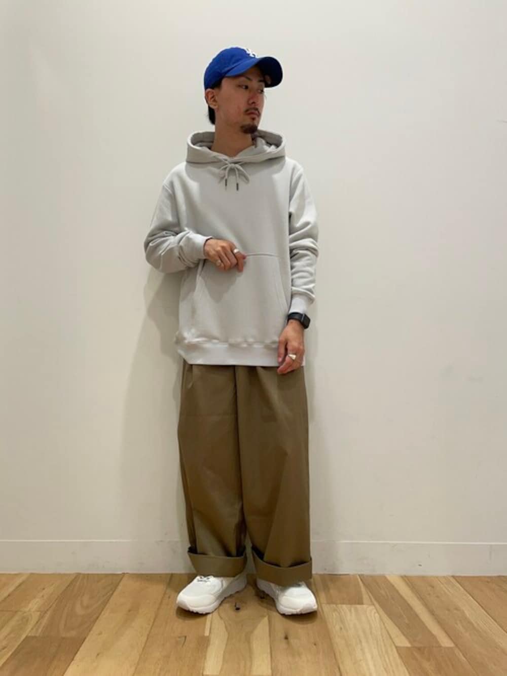 いつもご覧いただきありがとうございます😭 GRAY × BEIGE シンプルなカラー合わせにブルーキャップで差し色に🎈