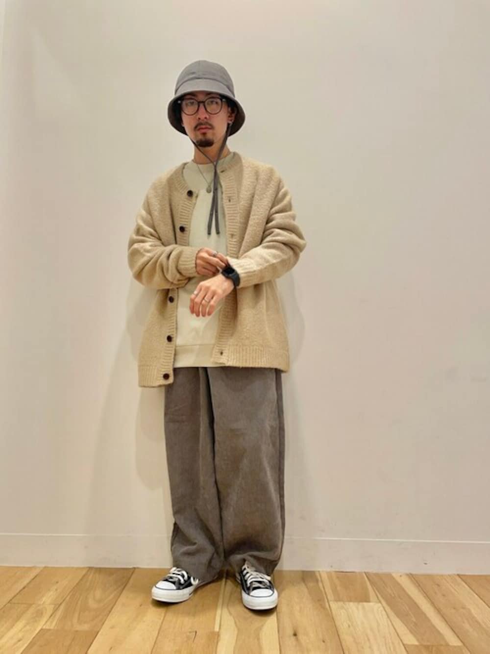 いつもご覧いただきありがとうございます😂 GREIGE × PURPLE カーディガンとコーデュロイで大人カジュアルに🎈