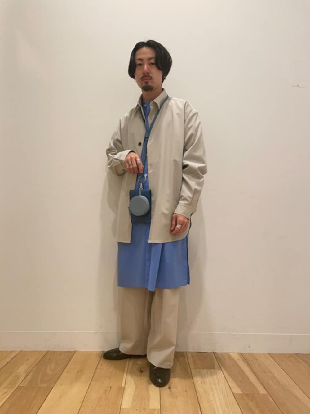 いつもご覧いただきありがとうございます😭 GREIGE × BLUE セットアップにロングシャツでレイヤード🎈