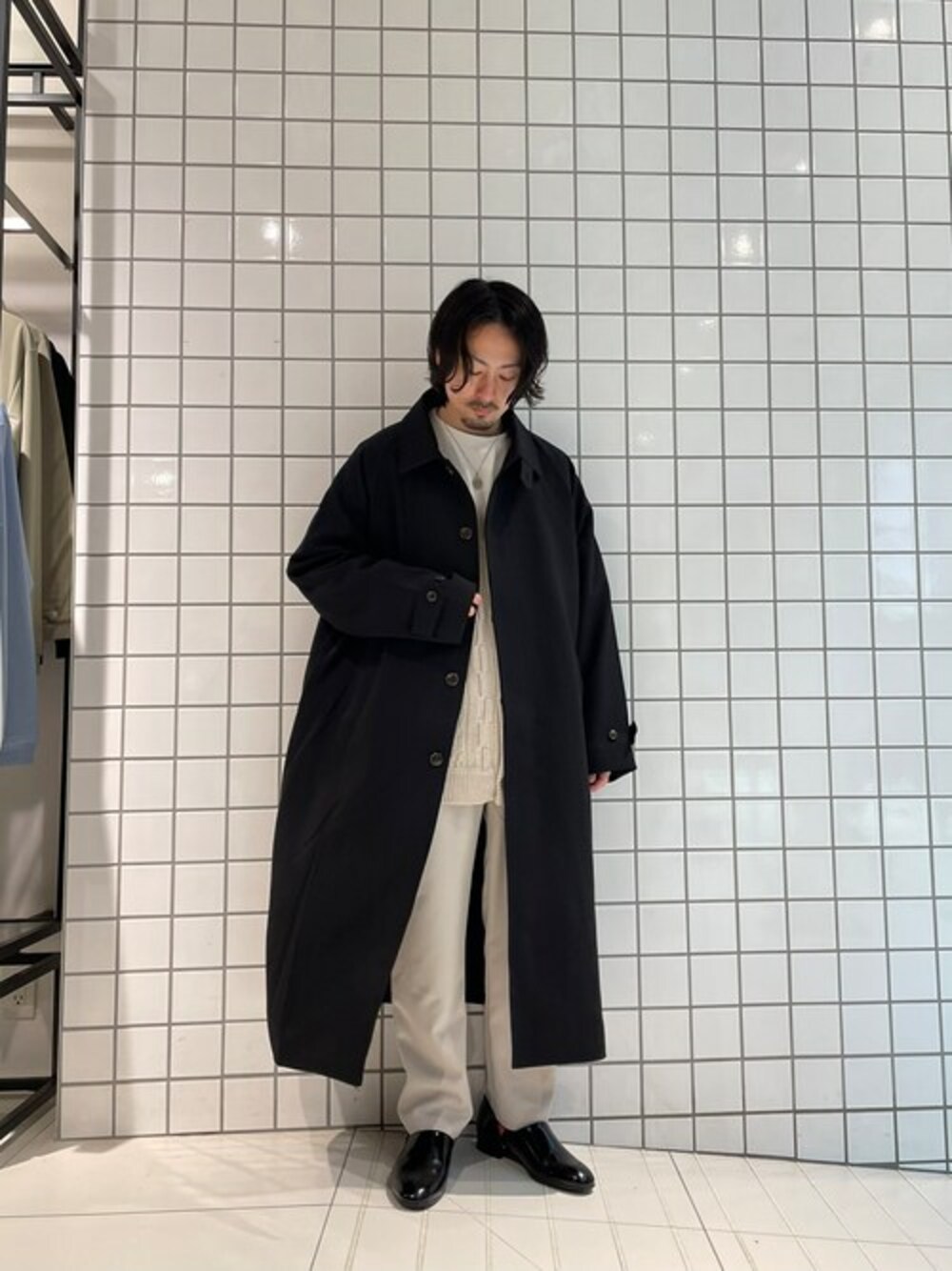 Ryot@(SENSE OF PLACE グランフロント大阪)のステンカラーコート「バルマカーンルーズコート」を使ったコーディネート
