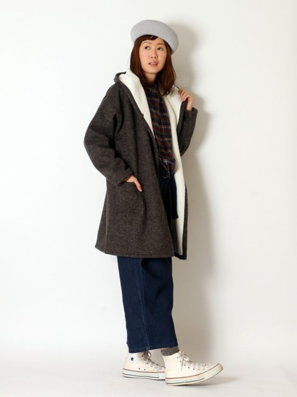 裏ボア仕立てのあったかコート。 ゆったりとしたサイズ感なので中に厚手のニットなどを着ても安心。 ボタンを外してさらっと羽織れば、中のボアがちょうど良く覗いてアクセントになってくれます。