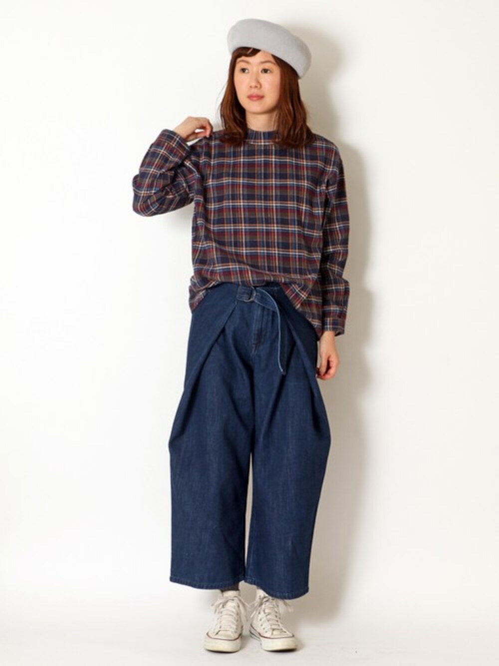 sakuのシャツ/ブラウス「チェックスタンドネックブラウス 」を使ったコーディネート