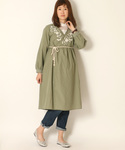フロントが重なったカシュクール仕立ての刺繍ワンピース。 ロープベルトでウエストマークすれば目線が上がり、スタイルアップも狙えます。 前を開ければガウン風の羽織りとしても活躍♪ 季節やコーディネートに合わせて自由にアレンジして頂けます。