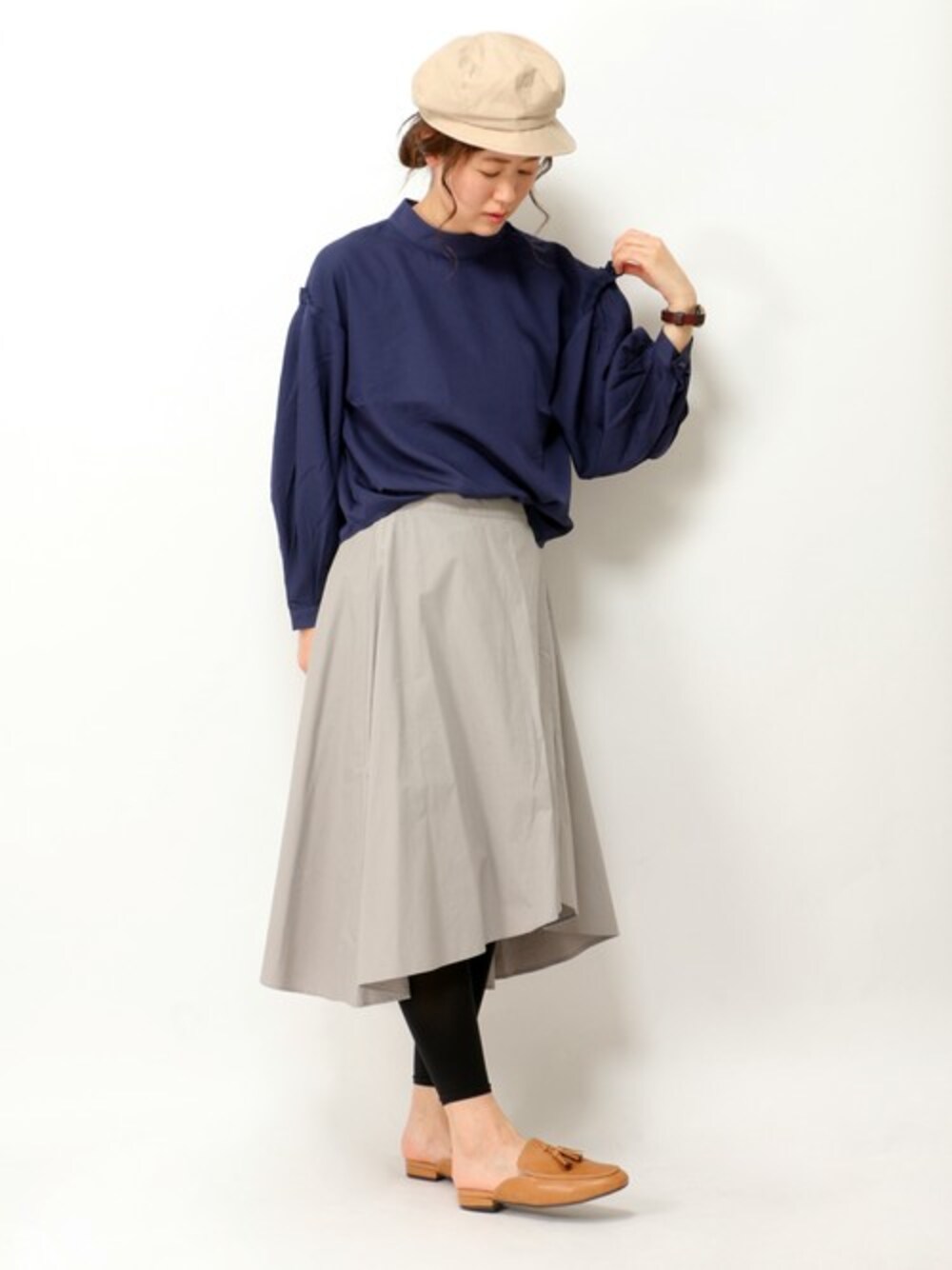 スタンドカラー&袖フリルのデザインブラウスは、まだまだトレンド継続中。 レーヨン混の落ち感のある生地を使用し、きれいめに着こなせるブラウスになりました。 ジャンスカやサロペットのインナーにもおすすめです。