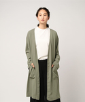てろんとしたブラウス風の生地を使った、きれい目な雰囲気のカーディガン。 ボタンレスでガウンのように気軽に羽織れて、ライトアウターとして活躍してくれます。 たっぷり長めの着丈ですが、サイドスリット入りで軽快な雰囲気。 手持ちのベルトでウエストマークするアレンジもおすすめです。