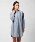 パリッと一枚で決まるシャツワンピースは、春夏に着たいアイテムNo.1♪ 寒いうちはニットと重ね着、春先は前をしめてインナーで調節しながらワンピースとして、暖かく なったら羽織としてなど文句なしの着回し力。 ボタンやポケットの一部の糸を配色にしてLBCらしさを取り入れました。 コットンオックス でしっかり洗えます。