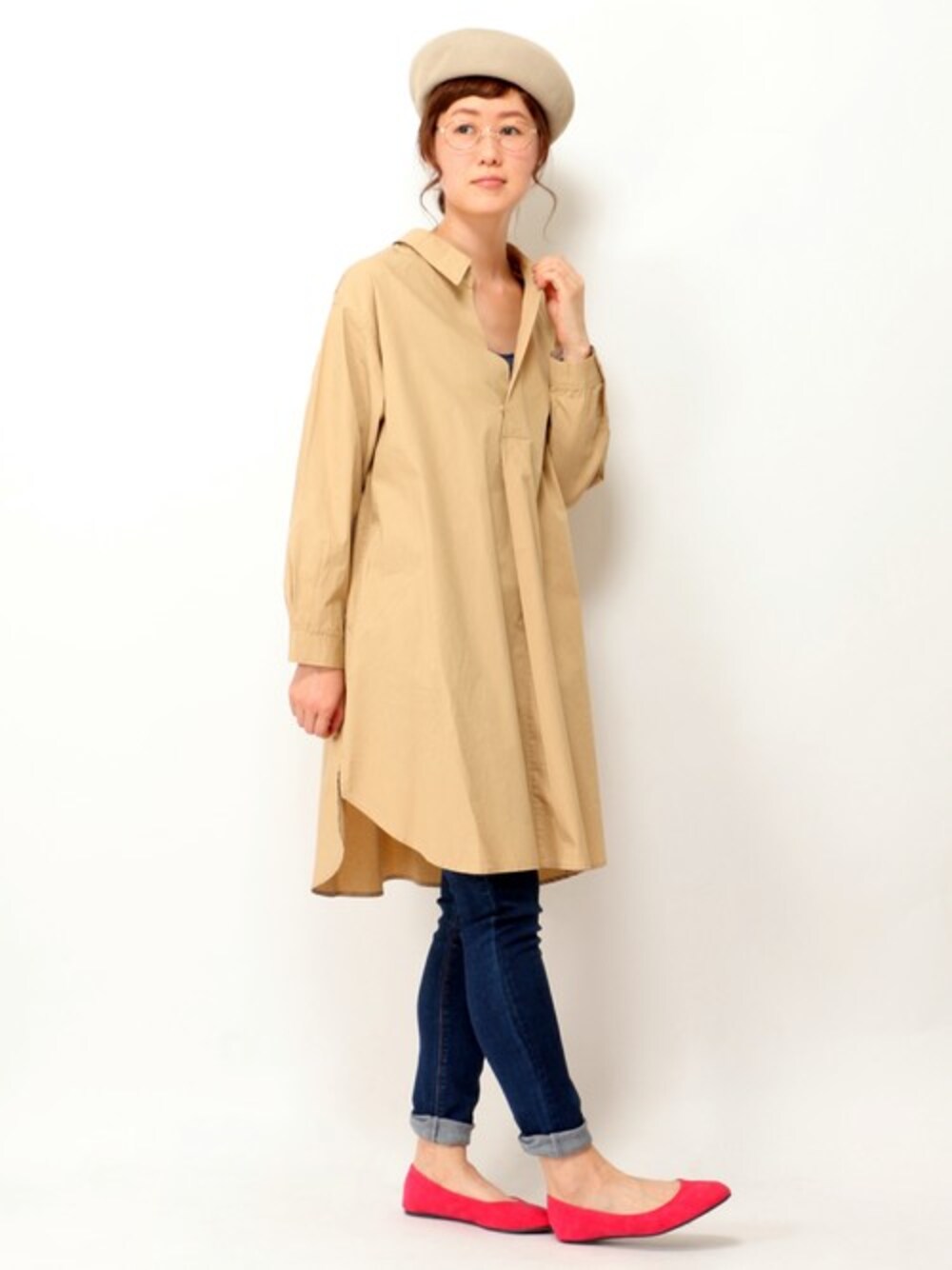パリッとしたハリ感とクリーンな表面感のあるタイプライター生地を使用したスキッパーワンピース。 少しだけ前後差のある着丈、サイドスリット入りのヌケ感で、ばさっと一枚かぶるだけでバランス上手なシルエット♪ 袖をたくし上げたり衿を抜いたり、今年らしい着崩しテクを楽しむのもおすすめです。 スキニーと合わせるコーディネートも◎