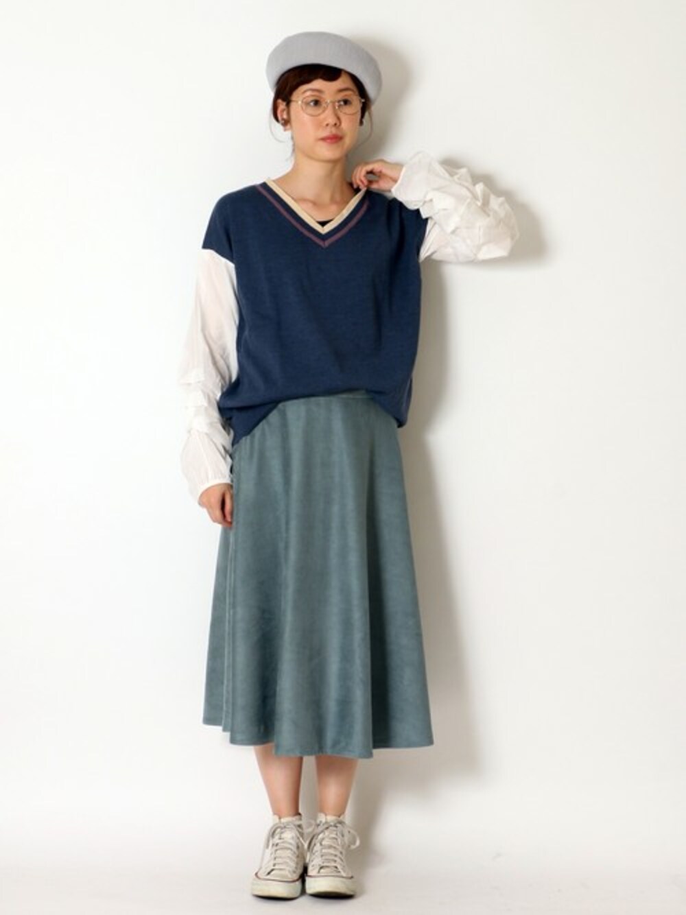 sakuのニット/セーター「袖布帛Vネックニット 」を使ったコーディネート