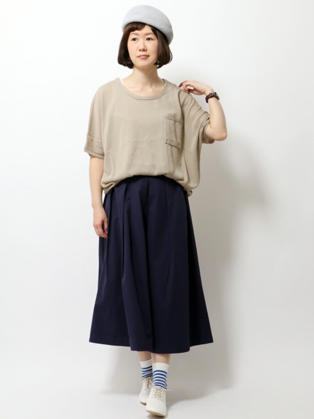 sakuのニット/セーター「リネンライクポケ付きプルオーバー」を使ったコーディネート