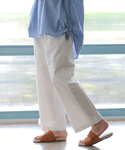腰回りやもものラインはゆったりとボリュームを出し、裾にかけて少しだけテーパードさせたワイドパンツ。 コットンのしっかり素材は透け感もなく安心の履き心地。 毎日着たくなるような定番アイテムです。