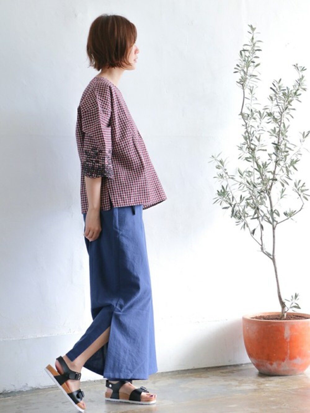 定番のギンガムチェックですが、袖口にインドならではのスカラップ刺繍を施して、可愛らしいブラウスにしました。 形はシンプルですが、スカラップ刺繍が入っているだけで抜群の存在感! 着るだけでフェミニンな雰囲気の装いになります。