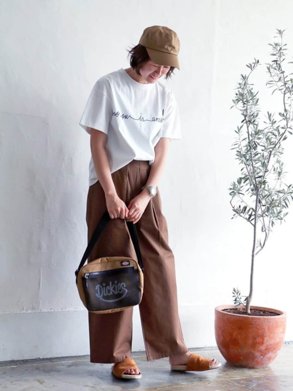 sakuのその他パンツ「コットンワイドチノタックパンツ」を使ったコーディネート