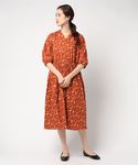 フェミニンな雰囲気の花柄プリントワンピースです。 たっぷりとした身幅ですが、ウエストはゴムギャザーできれいに着て頂けます。 1枚で着ても主役級、前ボタンを開ければ羽織りとしてもお使い頂けます。 落ち着いたカラーリングで、秋口まで活躍します。