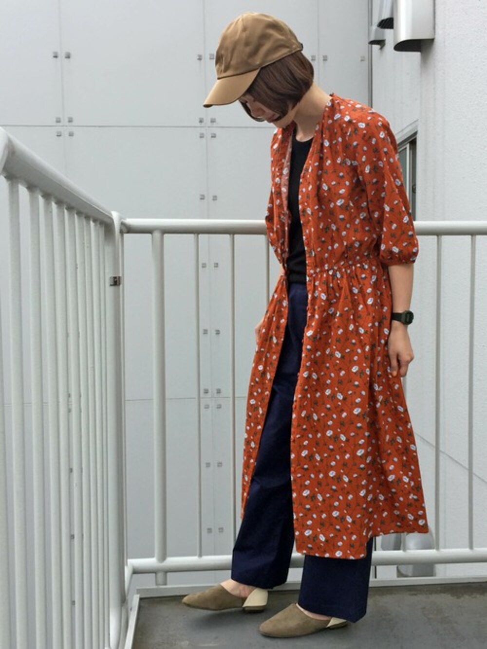 sakuのワンピース「リネンコットン花柄プリントワンピース」を使ったコーディネート
