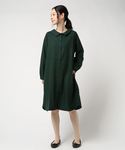前後どちらを前にしてもOKで、さらに羽織りとしても使える3WAY設計のワンピース。 綿混素材でさらっとカジュアルに着られます。 身幅に余裕のあるシルエットですが、ボリュームが出過ぎないきれいなフレアです。 袖口はロールアップもできます。 着方次第で雰囲気を変えながらコーディネートして頂けます。