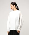両サイドにレース生地を入れたブラウスです。 同色のインナーを合わせればクラシカル&上品な装いに。 色によってはレースの印象が大きく変わり、個性的な着こなしも叶います。 身生地はパウダータッチのさらっとした素材で、よそ行き風にもデイリーにもOKです。 袖口はフェミニンなシャーリング仕上げで、肘あたりまで上げてふんわり袖にして雰囲気を変えることもできます。