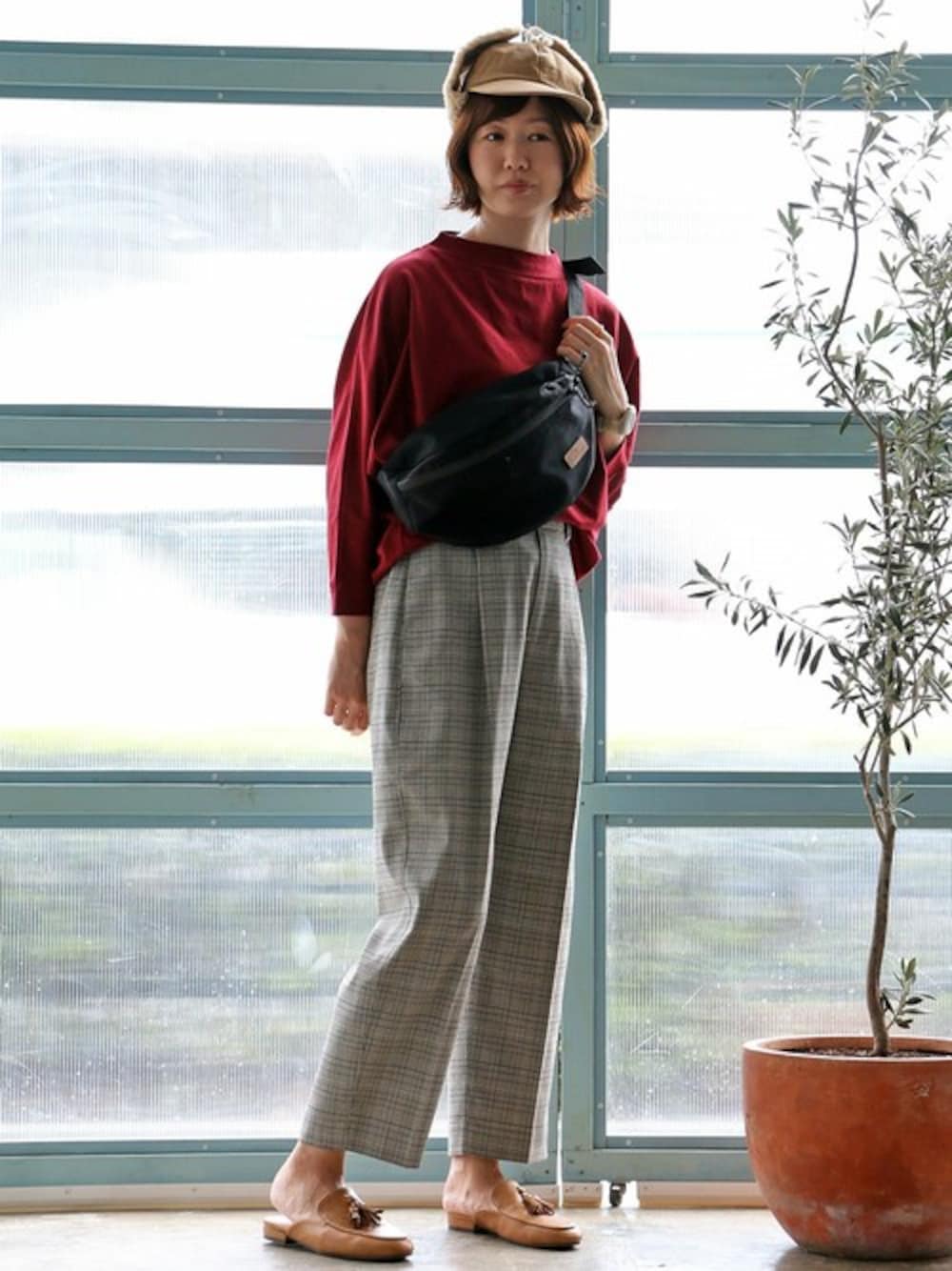 sakuのその他パンツ「チェックワイドテーパードパンツ」を使ったコーディネート