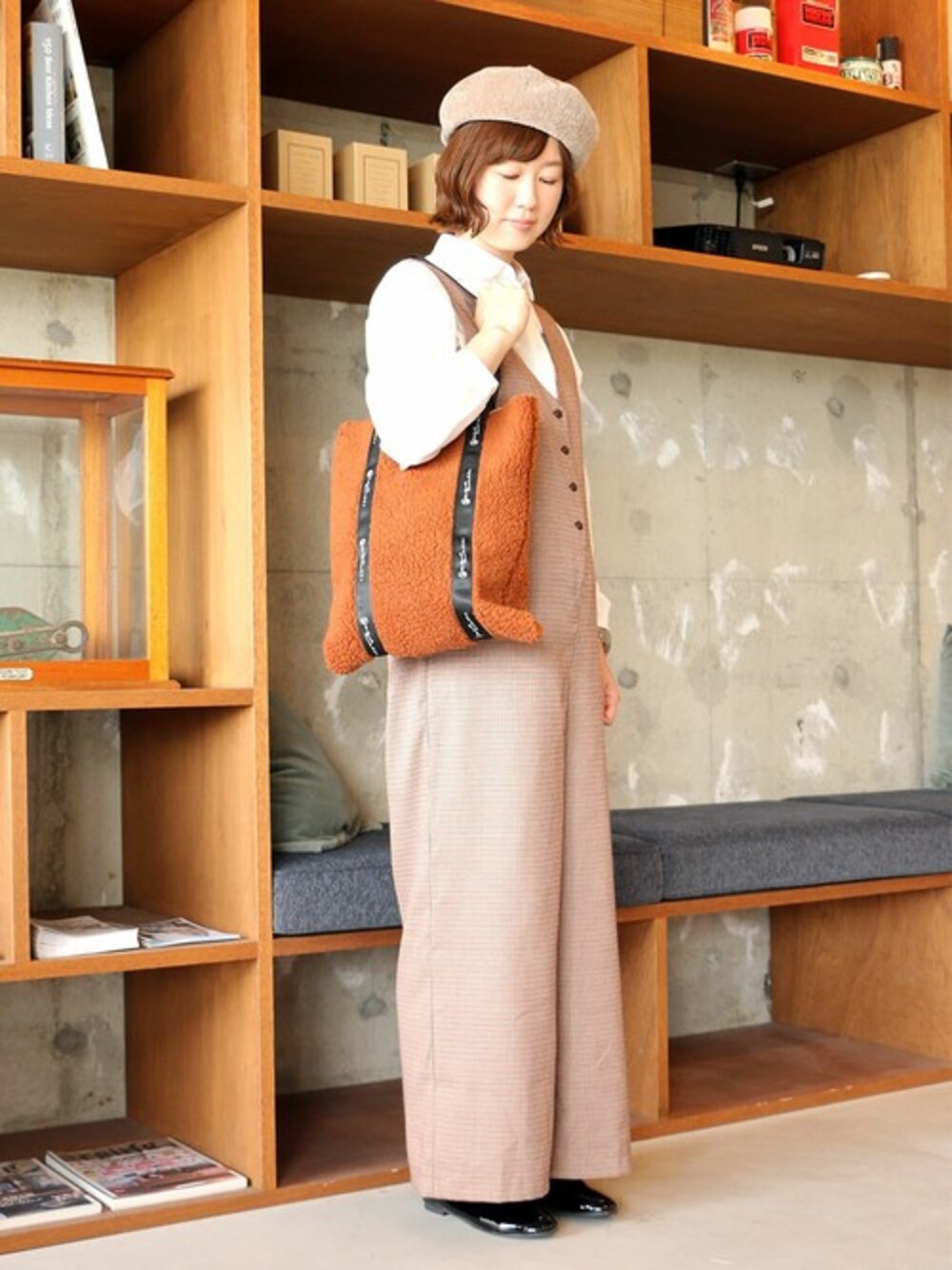 sakuのトートバッグ「リバーシブルボアトートバッグ」を使ったコーディネート