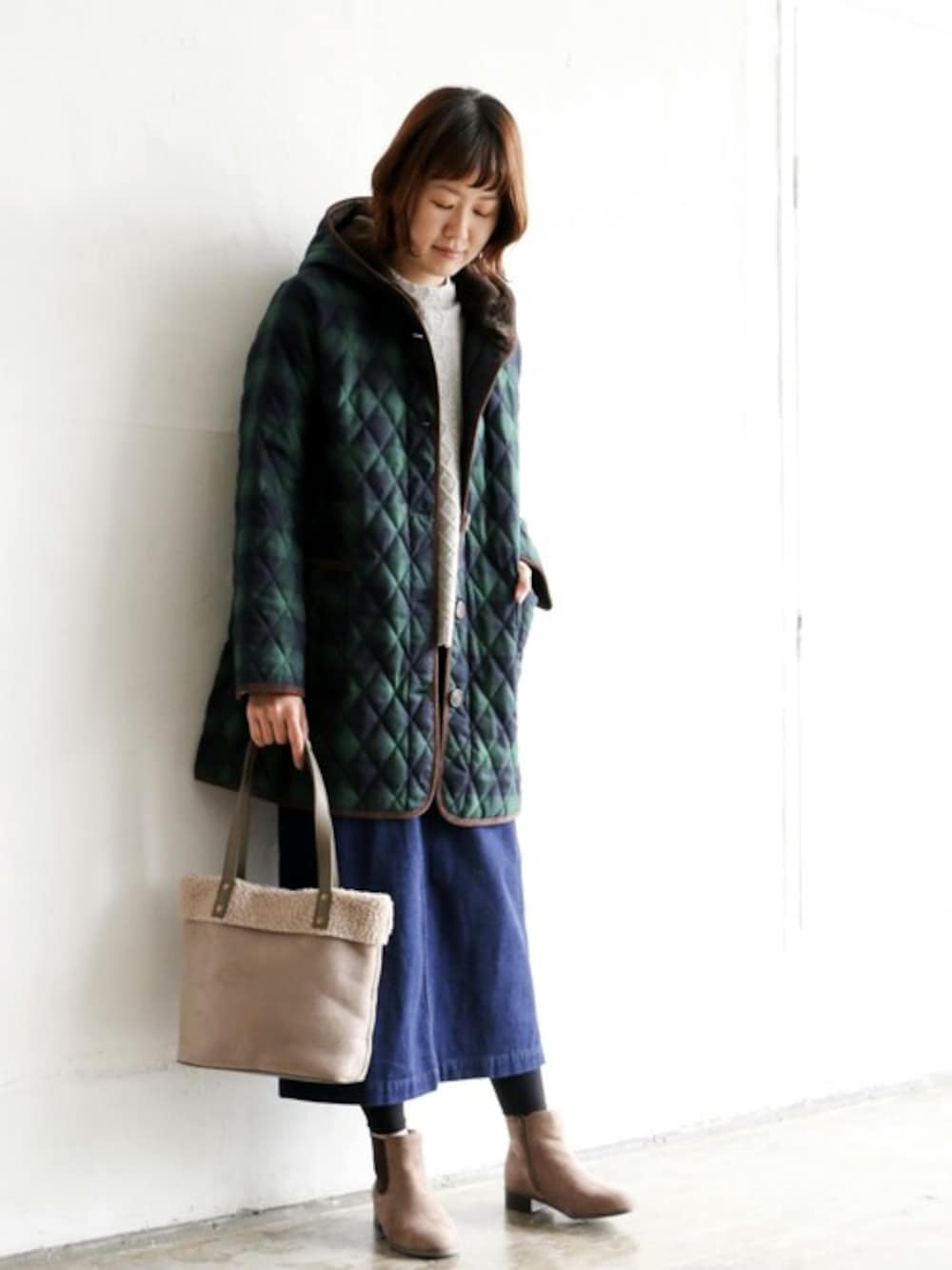 毎年人気のフード裏がボア素材のキルトジャケットです。 今年はトレンドのブラックウォッチ柄もご用意。 軽いので重ね着もOK! 顔まわりのボアがあたたかさを演出してくれます。