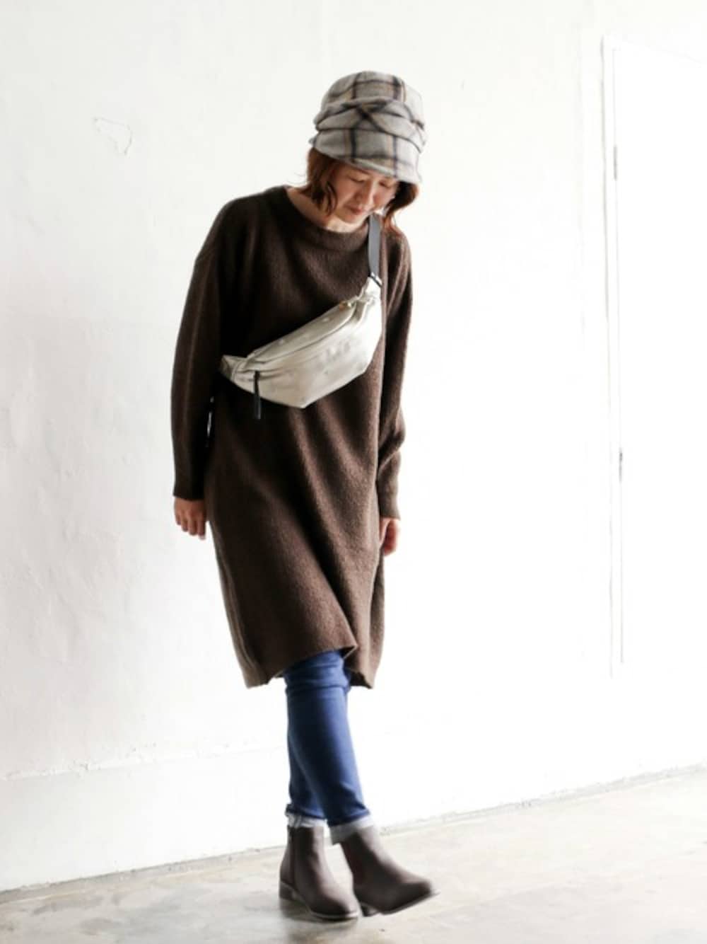 sakuのワンピース「7Gワッフル編みニットワンピース」を使ったコーディネート
