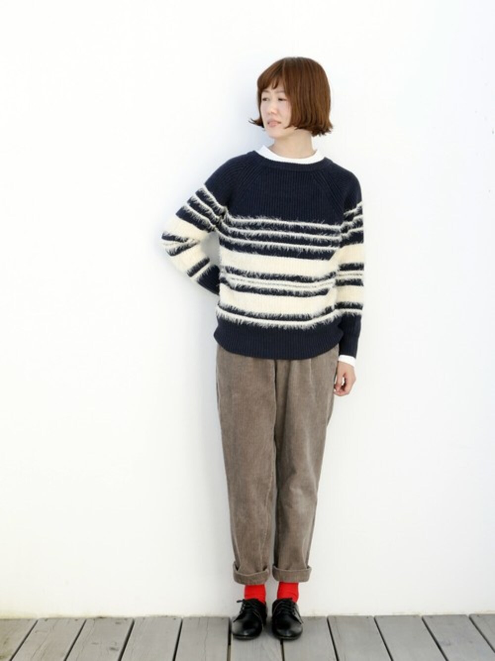 saku(Lbc with Life ぴぽっと仙川店)のニット/セーター「フェザーヤーンミックスボーダープルオーバー」を使ったコーディネート