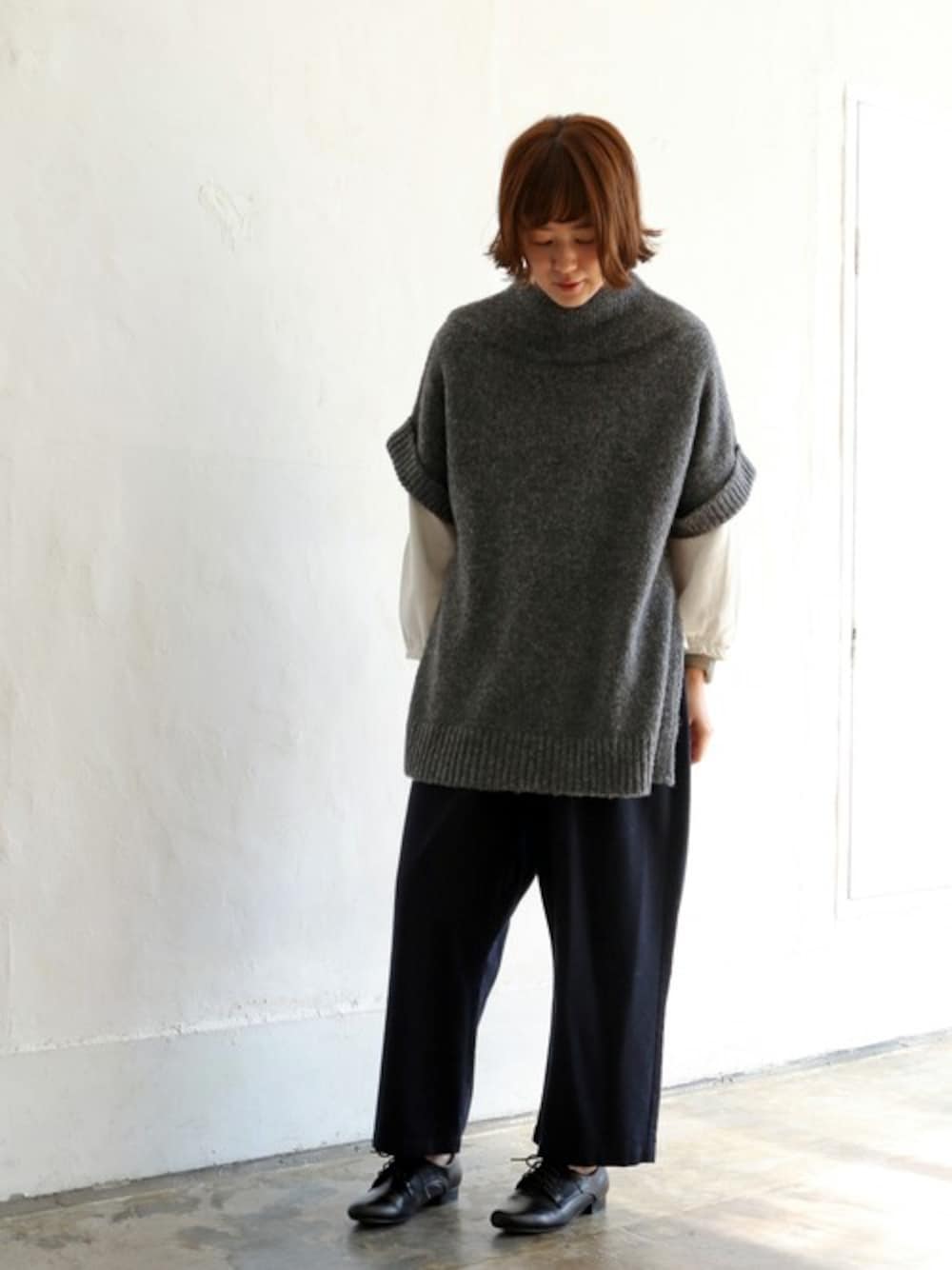 sakuのニット/セーター「bulエアーヤーンポンチョ」を使ったコーディネート