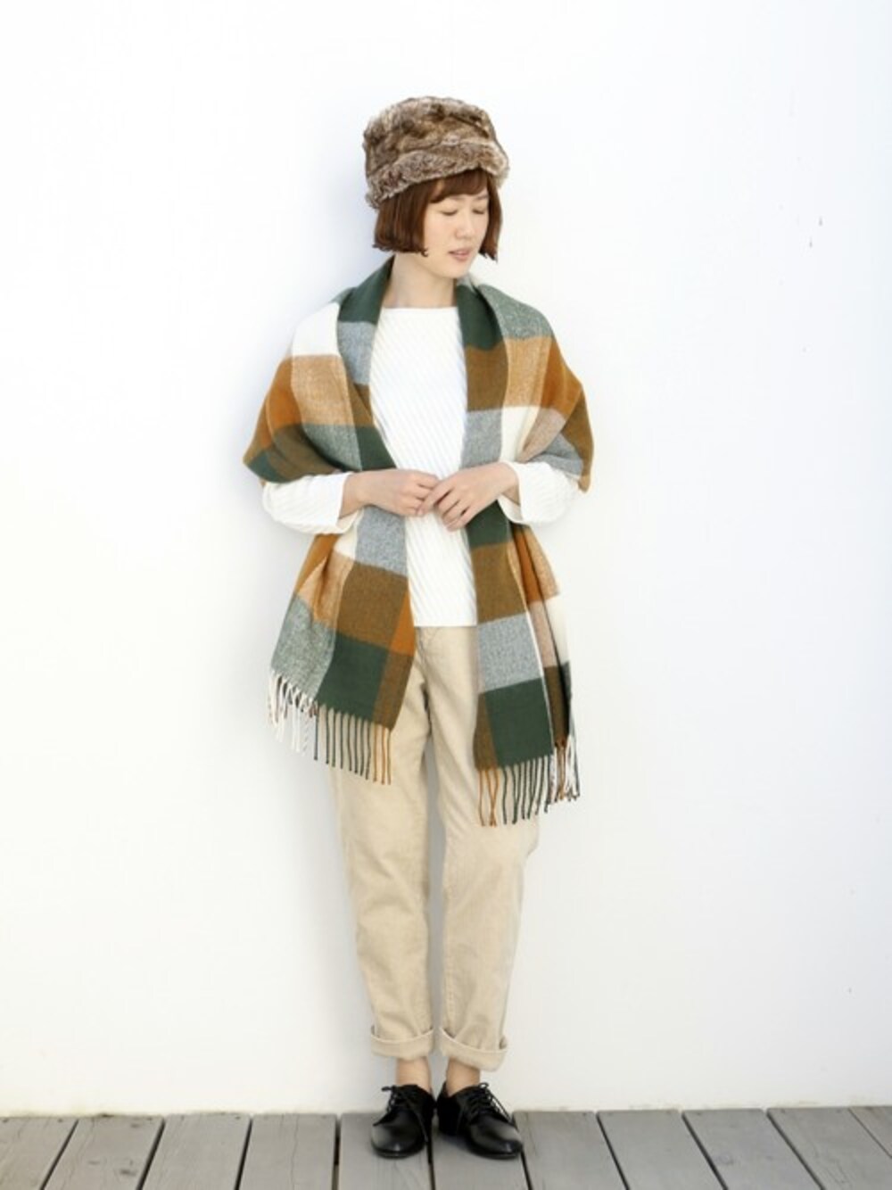 saku(Lbc with Life ぴぽっと仙川店)のストール/ショール「ブロックチェックストール」を使ったコーディネート